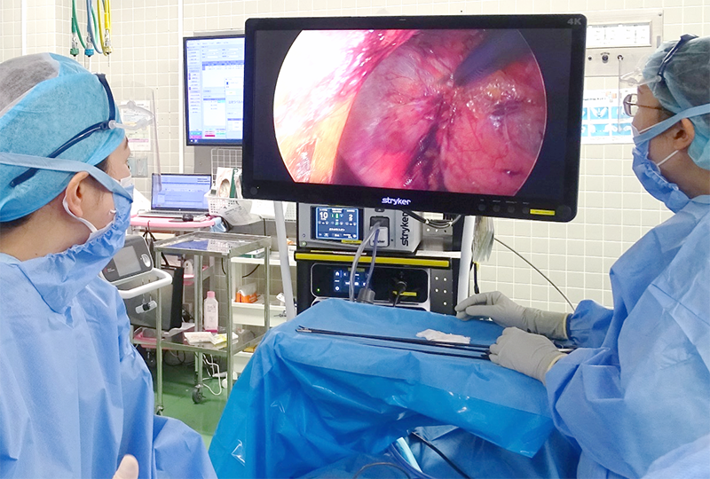胃がん・大腸がん・乳がんなどの悪性腫瘍、肛門疾患・虫垂炎・ヘルニア・胆石症などの良性疾患の外科治療を行っています。悪性腫瘍に対しては、病期に応じた適切な治療(手術、化学療法)を行います。手術では根治性を担保し、多くはからだにやさしい腹腔鏡下手術を行います。肛門疾患も専門医が外来と手術を行っています。術後の肛門機能を配慮し手術を行います。