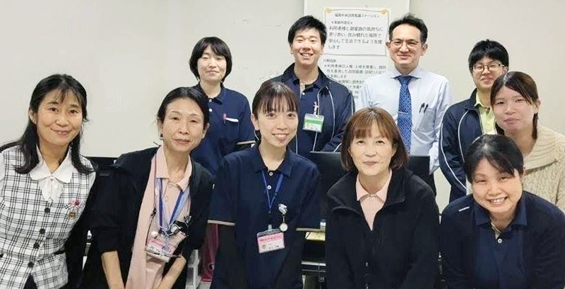 ※事業所全体での計画的な研修(ナーシングスキルによる学習)の実施による知識の習得や、多職種との情報共有・連携を大切にし、ご利用者様・ご家族が望む在宅生活のサポートができるよう、日々取り組んでいます。また、福岡中央病院と連携して在宅生活に必要な支援についての検討を行っています。