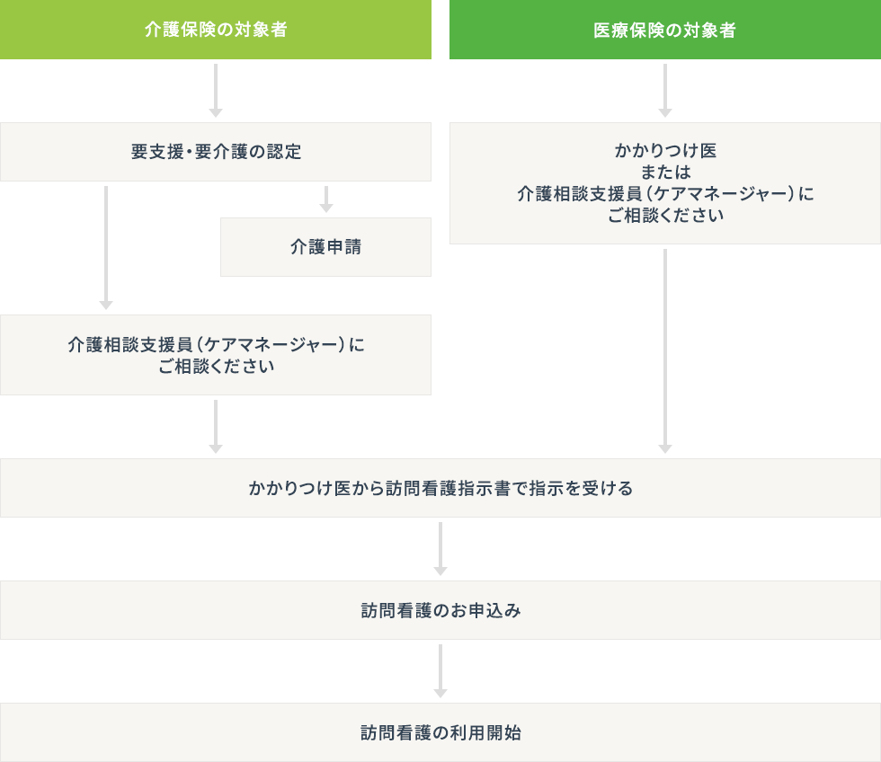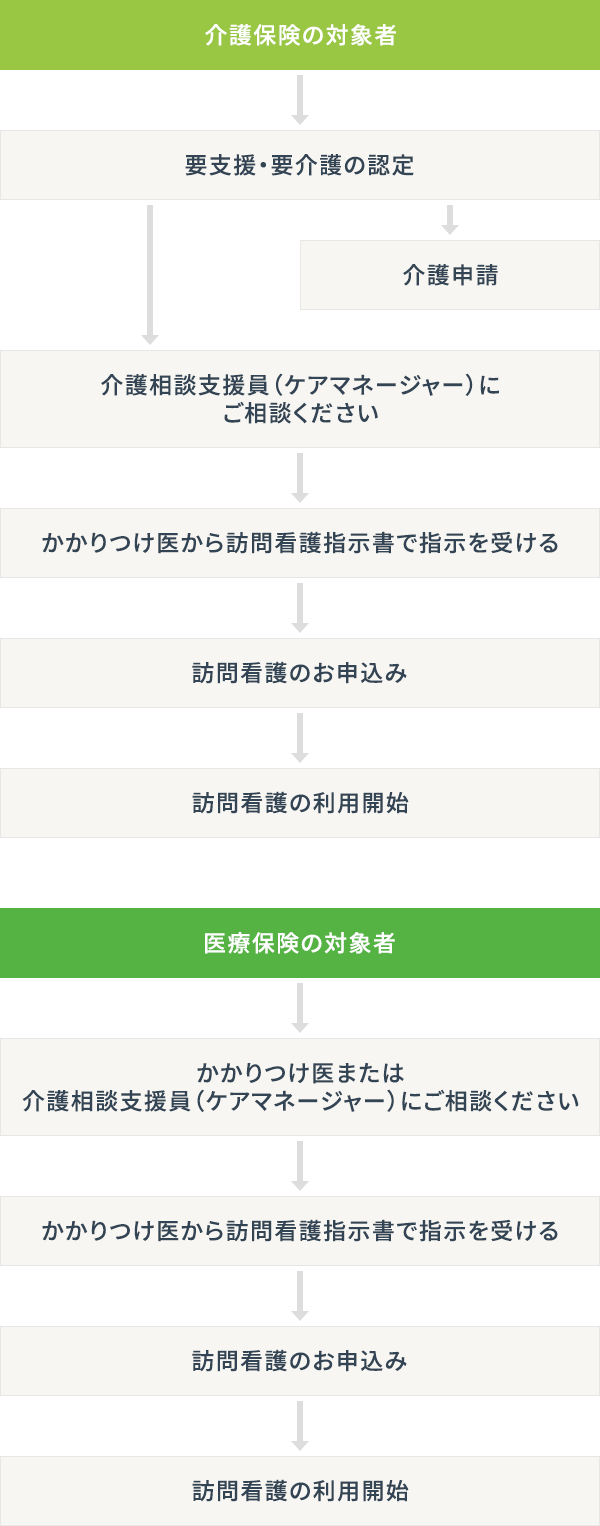 看護師・理学療法士・作業療法士・言語聴覚士が定期的に自宅を訪問し、療養生活を支援するサービスを提供しています。