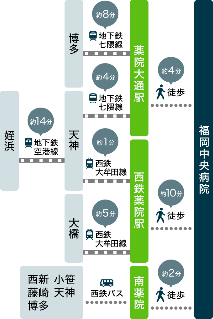 地下鉄・七隈線「薬院大通駅」と西鉄「薬院駅」どちらも徒歩圏内。