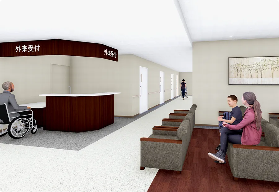 新しくできた病院の内装は、患者様だけでなく、働くスタッフにとっても大変魅力的な環境を提供しています。病院のエントランスホールに足を踏み入れると、広々とした空間と柔らかな自然光が迎えてくれます。壁には落ち着いたカラーが使われ、温かみのある木材とガラスを組み合わせたモダンなデザインが、清潔感と同時に温もりを感じさせます。ここは、日常のあわただしさの中にありながらも、ふとリラックスできる場所として、働く皆様にとっても癒しの空間となるでしょう。